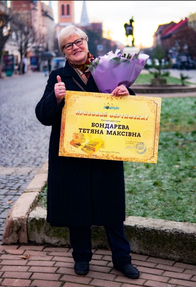 Саме тому, не порушуючи наших традицій ми приїхали до закарпатського міста та зустрілися з призеркою Бондаревою Тетяною Максівною у затишній кав’ярні, щоб дізнатися її історію успіху, підписати усі необхідні документи, привітати та вручити сертифікат Головного переможця акції.